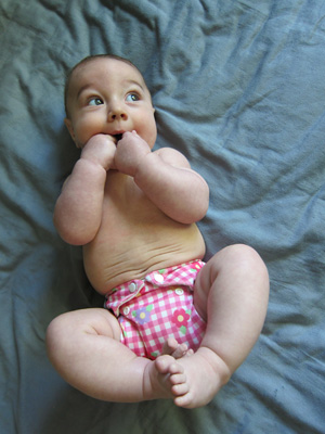 For example, I know this sweet new vegan named Sula. Just a few months older than Waits, we met her parents by sharing a table at our favorite, particularly crowded, Sunday brunch buffet. Months later we ran into them again and discovered that we were both pregnant! And now when we bump into each other at brunch we talk babies, as new parents tend to do . . . and of course we also talk cloth, as crunchy folk tend to do.